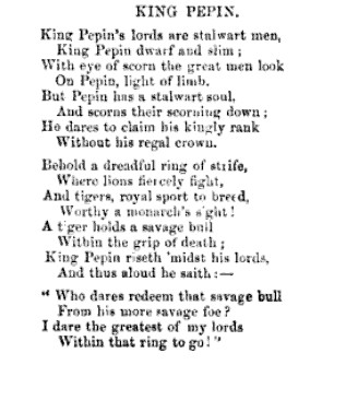 In a later edition of the same magazine, we find another poem by Angus Macpherson about King Pepin.