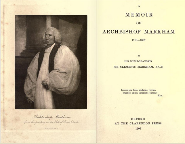 In relation to Archbishop Markham, I refer you to Sir Robert Clement’s “A Memoir of Archbishop William Markham” which can be read on line or downloaded as a PDF on Open Library here http://archive.org/details/memoirofarchbish00markiala