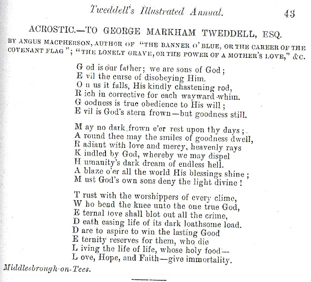 Historian Asa Briggs referred to George Markham Tweddell in his essay on Middlesbrough in Victorian Cities as follows –