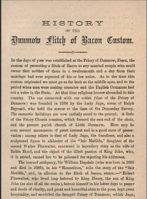 - History of the Dunmow Flitch of Bacon Custom by Mr Williams Andrews of Hull FRHS (more on this custom below) /