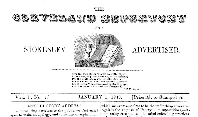 Here are some mast heads and pieces from George Markham Tweddell’s radical Stokesley based newspaper about 1842 as supplied by Paul Tweddell from his Tweddell archives..the Stokesley News and Cleveland Reporter. The story of his newspaper and the rival newspaper can be found here http://www.tweddellhistory.co.uk/chapter3.html. .