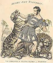 On the brighter side, reports of entertainment on a grand scale, seen in Stokesley on Saturday June 17th 1843, when Van Amburgh, the distinguished American Lion Tamer, visited town with his lions, tigers and leopards. “He arrived from Northallerton at eleven O’Clock, driving a team of eight beautiful cream horses, accompanied by his own band and followed by vehicles containing the animals. A splendid marquee was erected in Mrs Wilstrop’s paddock, now the site of the Stokesley Health Centre and performances given to densley crowded audiences“. It was noted that the animals were very well kept. Stokesley people were not the only admirers of Van Amburgh; it seems that “the young Queen Victoria particularly enjoyed circuses and was delighted to discover that the Drury Lane pantomime of 1838 included Van Amburgh’s lions. Despite an awful squint of the eye Van Amburgh grappled with the animals, threw them to the ground while they angrily roared and then lay upon them.” “It’s quite beautiful to see and makes me wish I could do the same.” was the wistful and mind boggling comment. She returned repeatedly, seven times in six weeks to see the lions” “Isaac A. Van Amburgh (1811–1865) was an American animal trainer who developed the first trained wild animal act in modern times. By introducing jungle acts into the circus, Van Amburgh paved the way for combining menageries with circuses. After that, menageries began using equestrian and clown performances in circus rings. Gradually the distinction between circus and menagerie faded. He was the first act to put his head in a lion’s mouth”