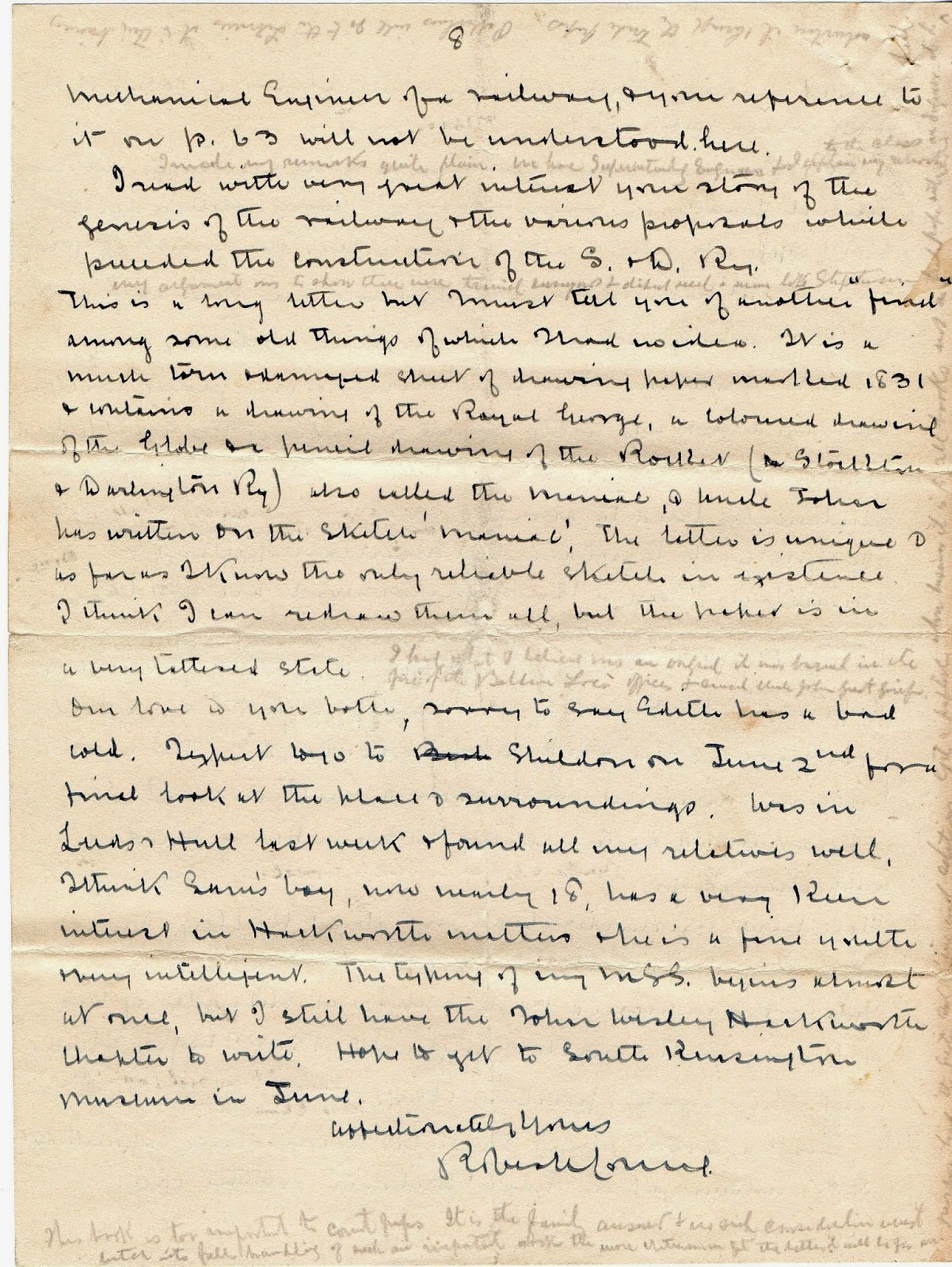 Robert Young to Samuel Holmes May 1920 (in the process of writing the Timothy Hackworth Book)