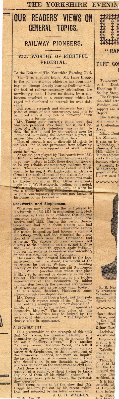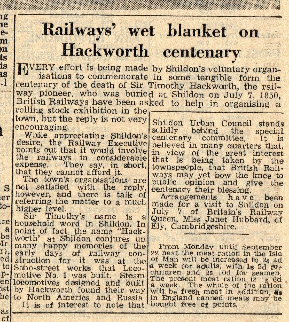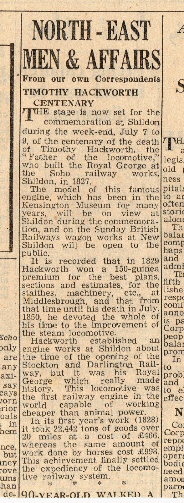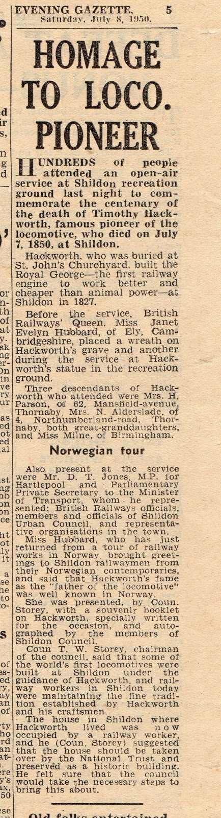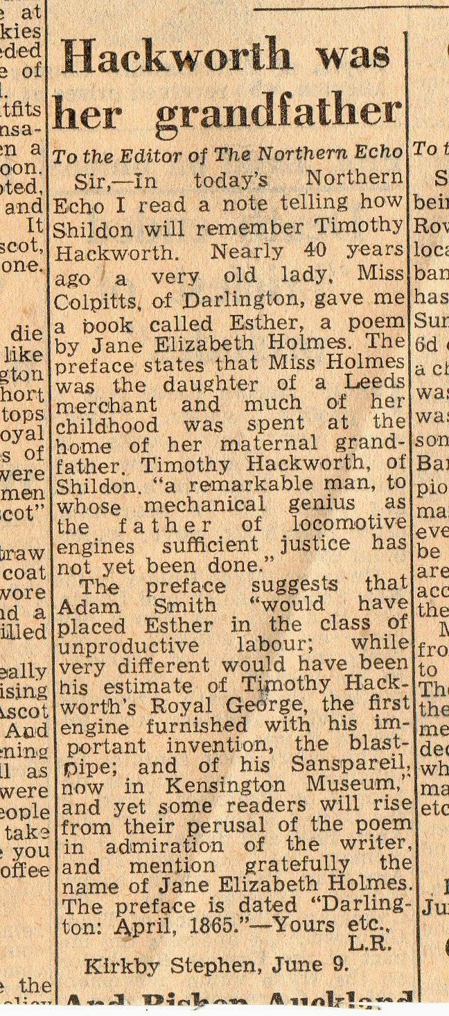 “Hackworth was her Grandfather” Press cutting Leave a Reply Press cutting Northern Echo c 1950 I think –