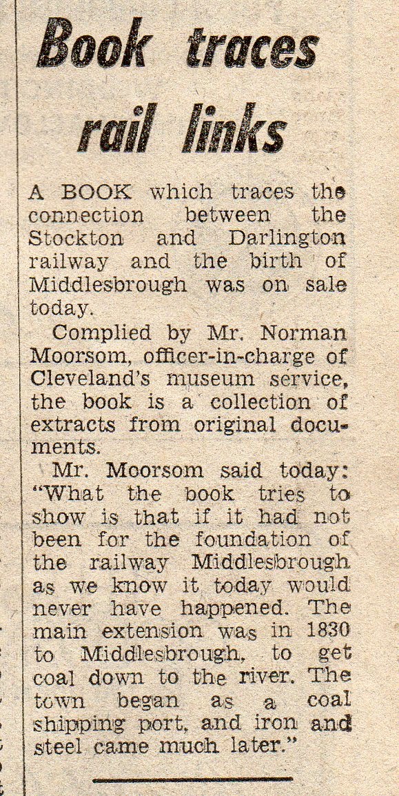 “Book Traces Rail Links – Middlesbrough Wouldn’t have Happened Without Railway” Sept 2nd 1975 Evening Gazette. Leave a Reply