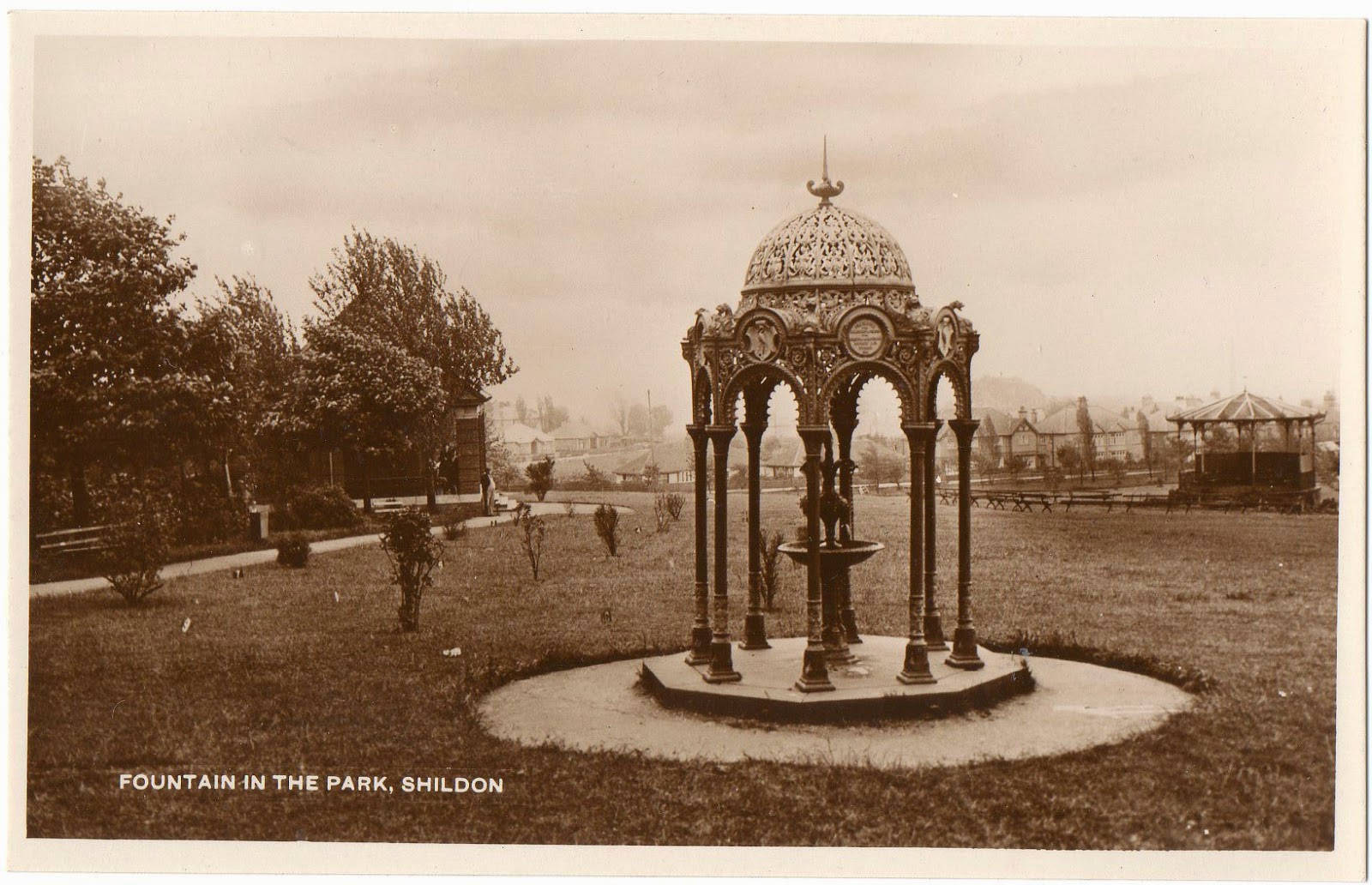 Fountain in the park – Shildon. Postcard.