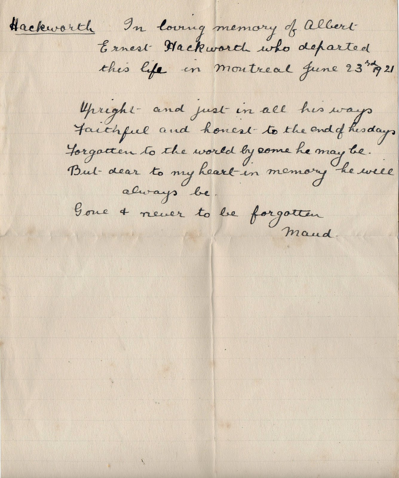 ‘Albert Hackworth’ (1853 – 1904) – Margaret Weir’s great grandfather, who married