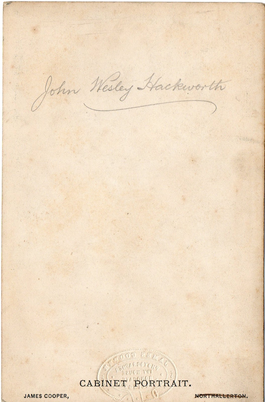 This beautiful Victorian photo album was among Joan Hackworth-Weir‘s belongings when she passed away. It has obviously been in the family for generations and is certainly a ‘Hackworth‘ album but i think with photos possibly from other sides of Joan’s family. Some of the photos in the collection are designated (notably John Wesley Hackworth) but many are not. Hopefully the wider family may be able to fill in some of the blanks! This album is split between several posts here.