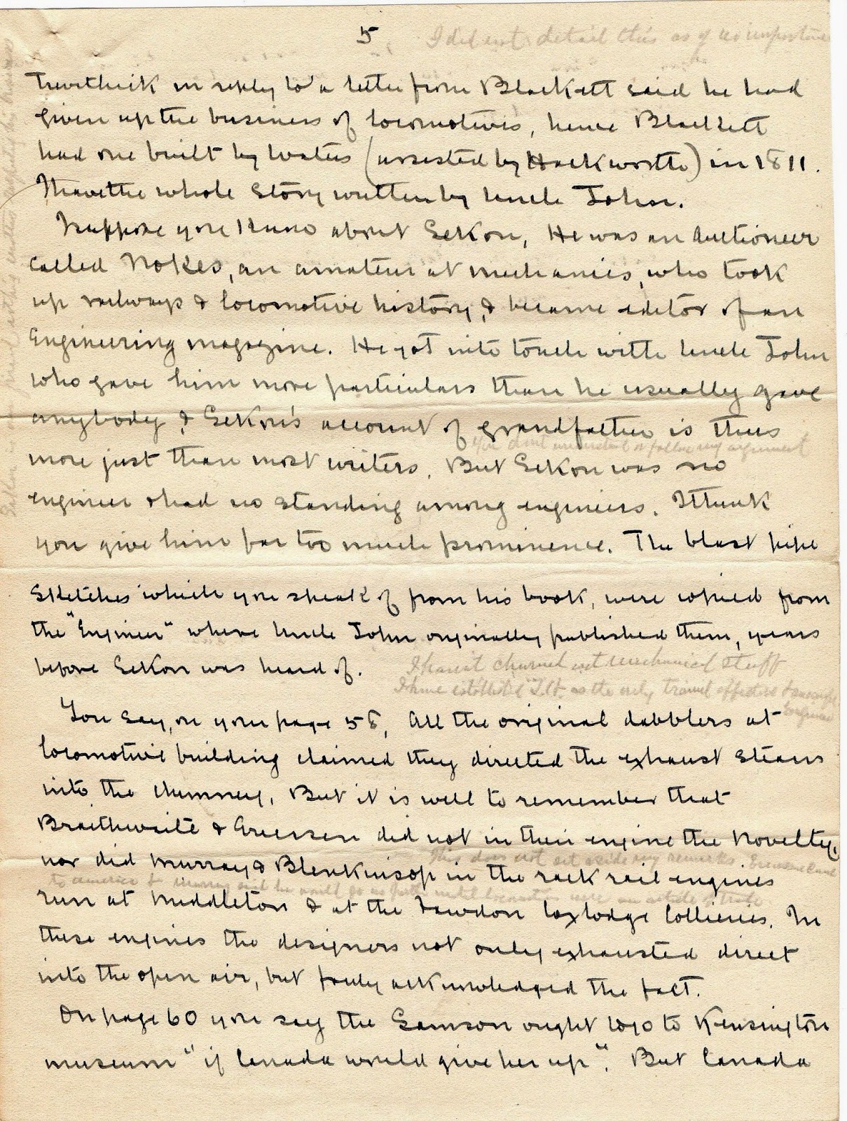 This is the letter referred to in above press cutting as it appears in Robert Young’s book Timothy Hackworth and the Locomotive, first published in 1923. Like the ‘blast Pipe letter from George Stephenson, this letter will have passed from Timothy Hackworth to his son John Wesley Hackworth who was originally going to write the book on his father, down to John’s son Albert Hackworth who emigrated to the States, and back to the UK to be used by Robert Young in the early 1920’s for his book and back to Albert’s offspring, so that by 1936, the letter is clearly in the custody of Winifred Hackworth, Joan Hackworth Weir‘s mother and from Joan via Jane Hackworth-Young to NRM Hackworth Collection at York.