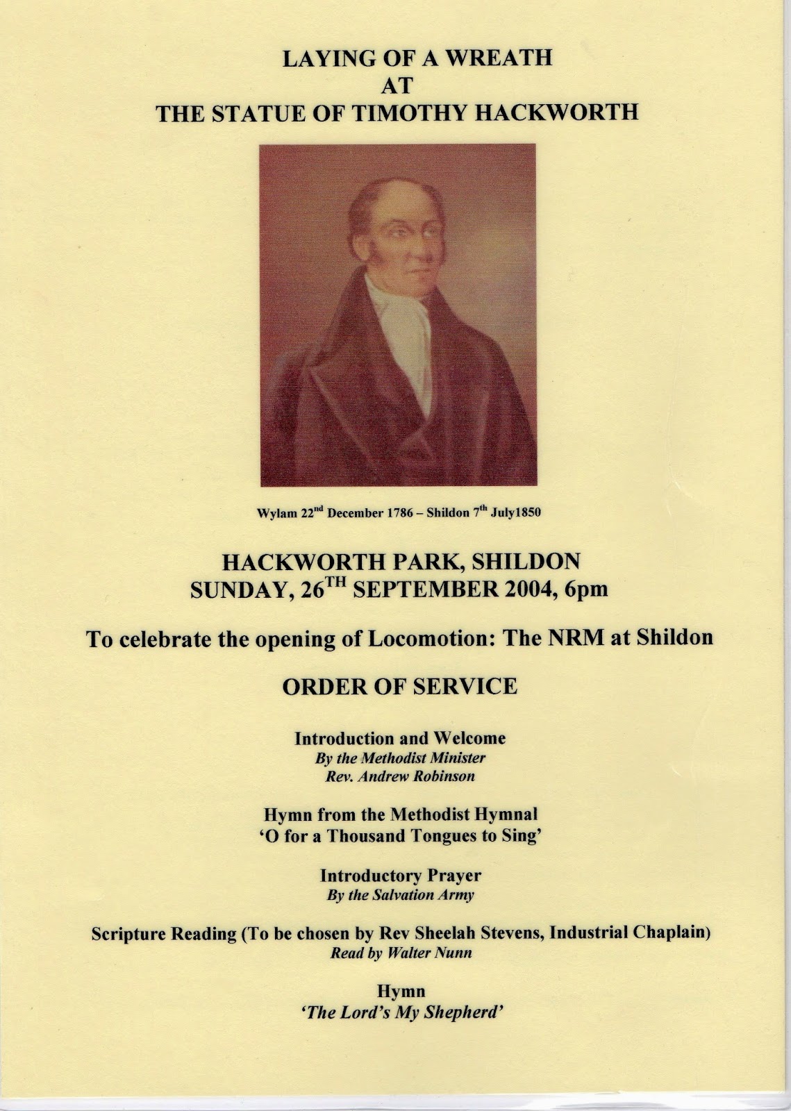 “The steam blast, Timothy Hackworth’s invention, was first used in this engine.” Mrs Parsons told a Northern Echo reporter. “It made possible the present world’s railway system and I and my daughter, my sister, Mrs Alderslade, and other descendants were present when the memorial to Timothy Hackworth at Shildon was unveiled by the Rt. Hon T R Ferens on 5th December 1925.”