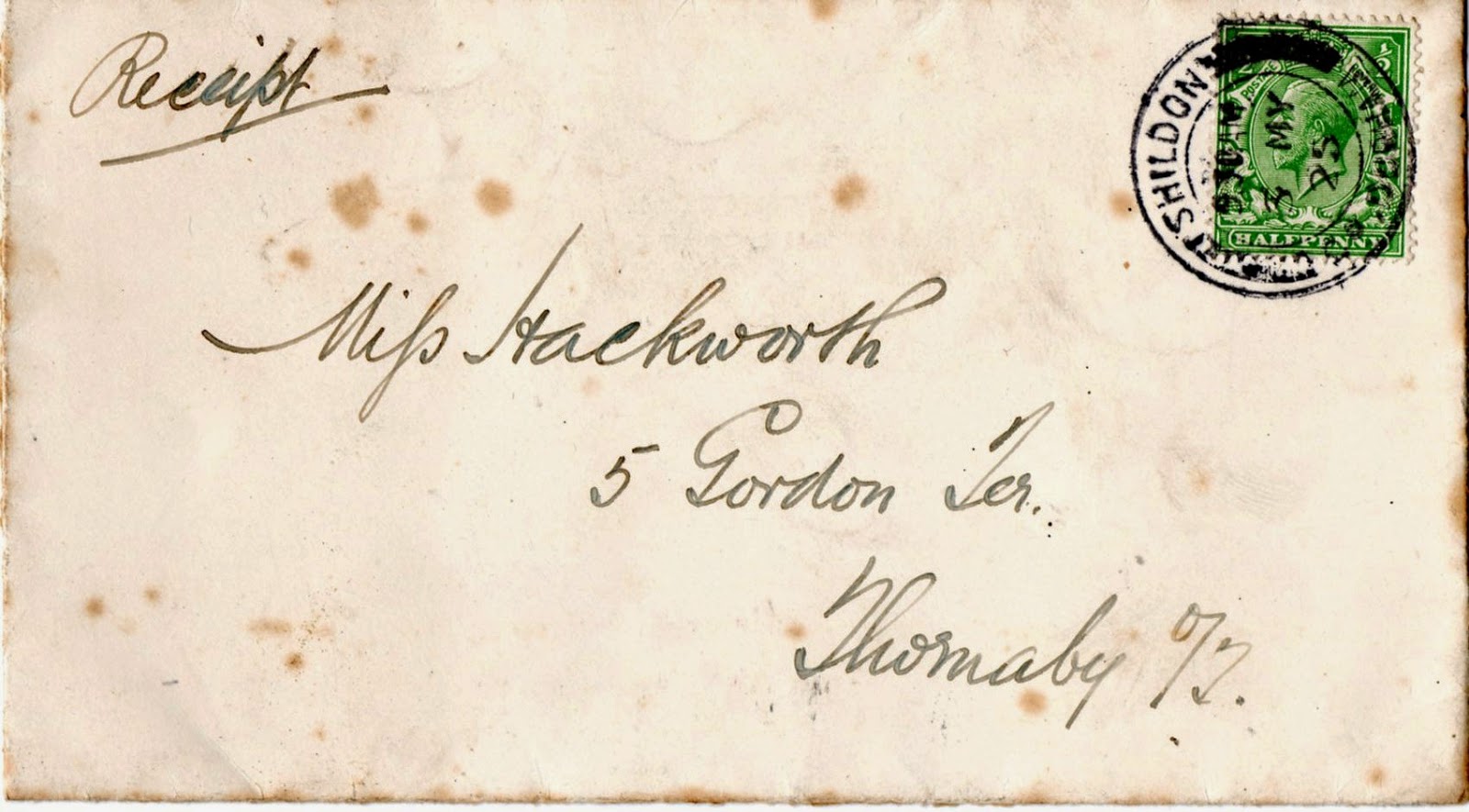 Receipt from Railway Centenary Fund for Donation from Mrs Parsons / Hackworth 1925