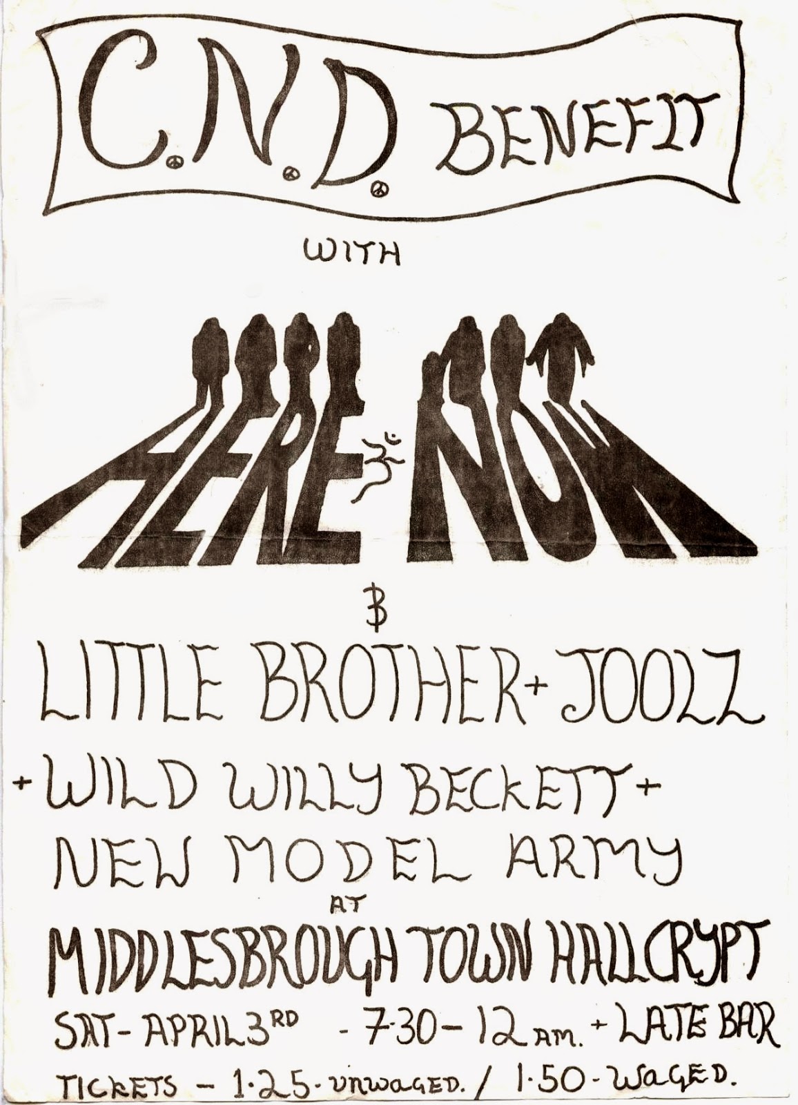 College arts festival, Middlesbrough Town Hall Crypt – a CND gig with Virgin band