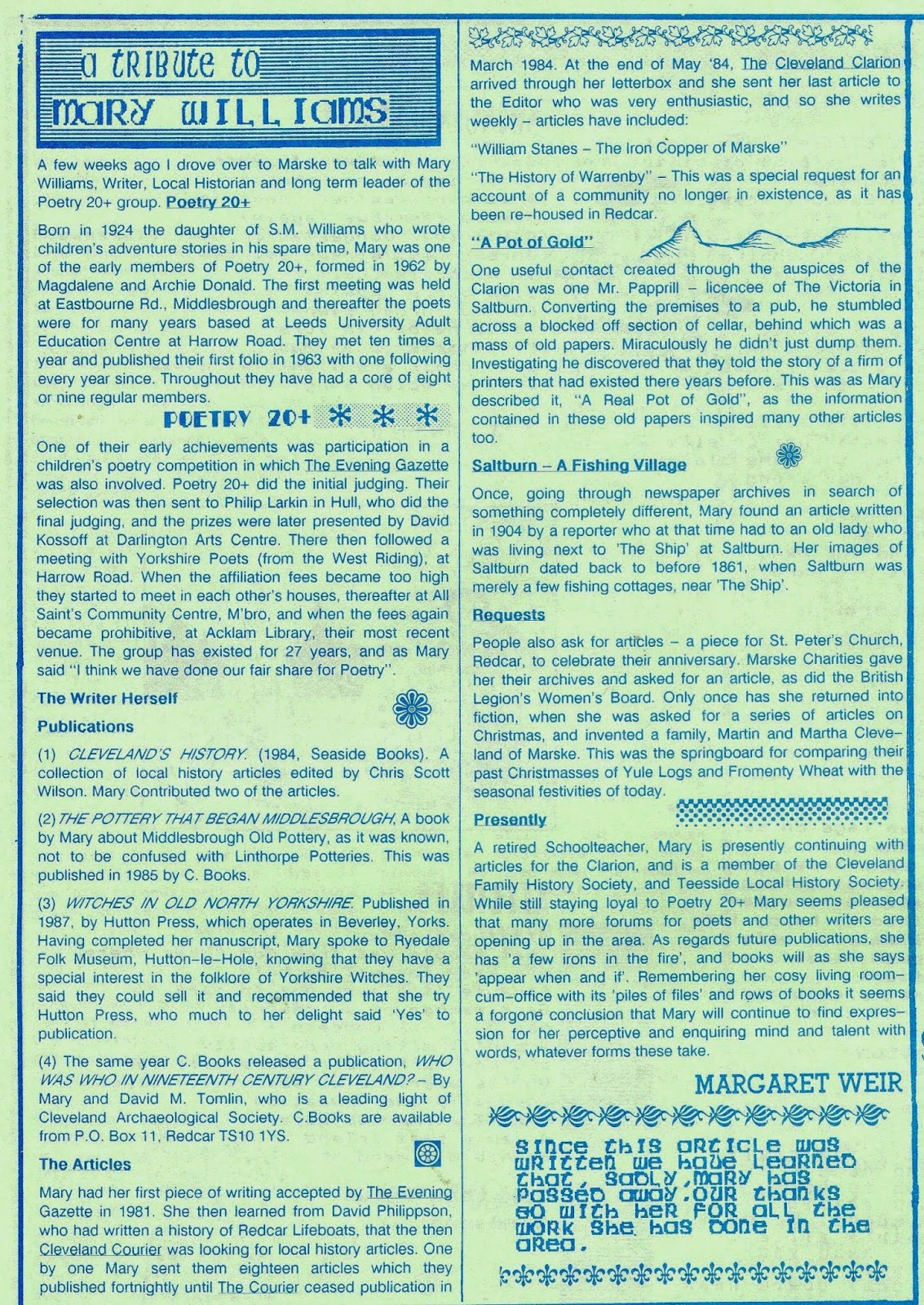 When Community Arts Middlesbrough (CAM) established the Teesside Writers Workshop in 1984, John Miles Longden, Peter Stockhill and Johnny Nichol became members of the Middlesbrough group and indeed formed part of the organising committee but the group itself was an initiative of CAM.