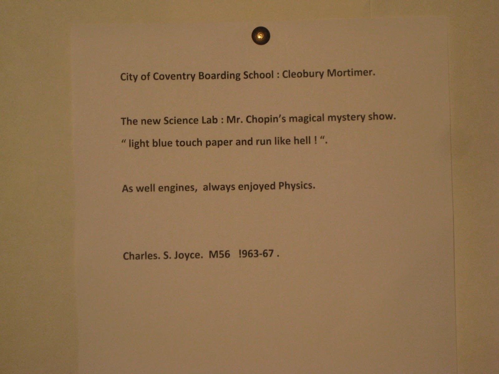 Here is the old science lab c 1964 as photographed by the Coventry Standard.