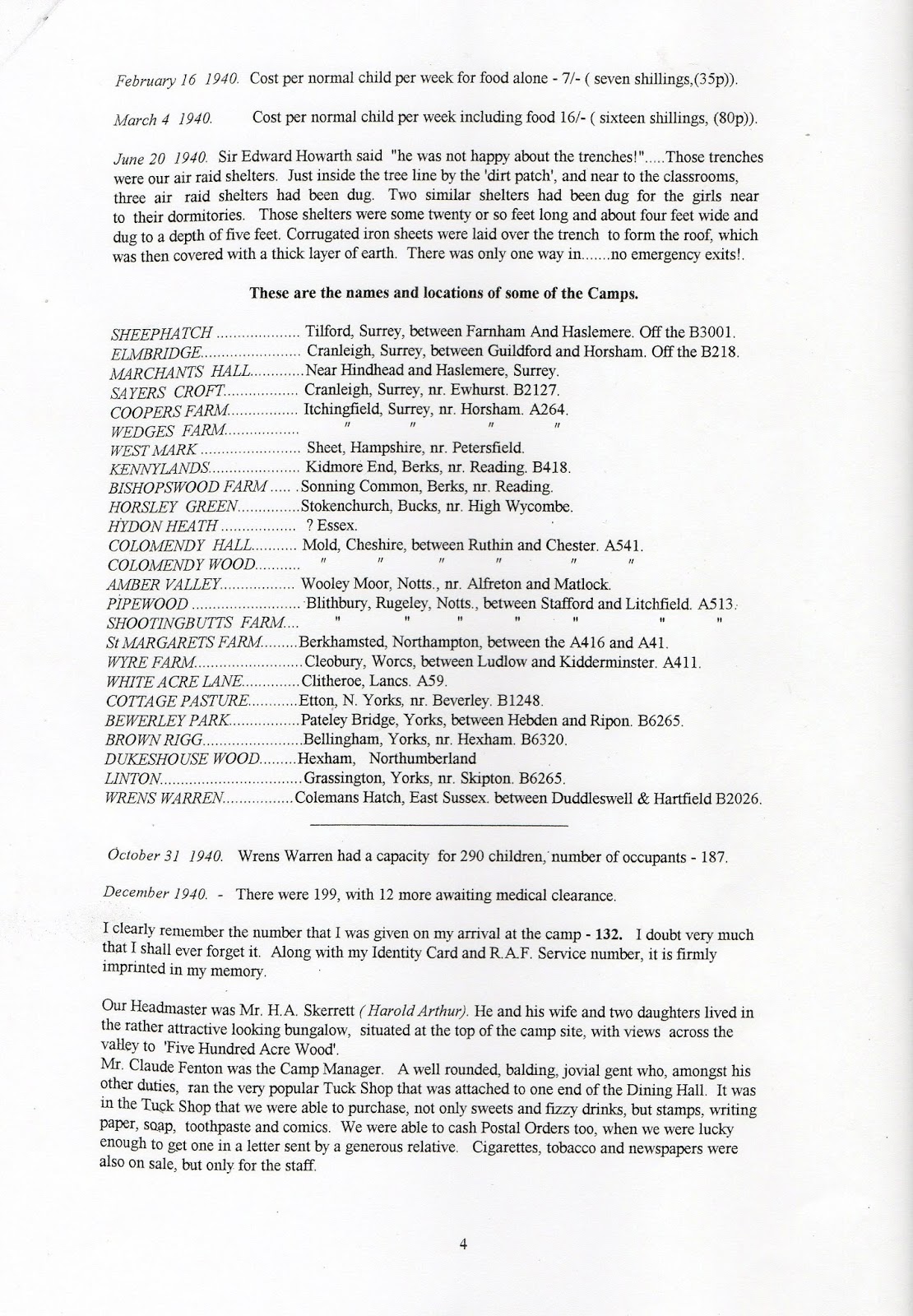 Among the archives we found this research into the National Camps Corporation supplied to David Mack by John Bell – who wrote a book about Wrens Warren Camp School in Coleman’s Hatch, East Sussex. Unlike Wyre Farm camp School, Wren’s Warren fell by the wayside and never became a secondary boarding school or anything related. It fell into dereliction and then a chicken farm and in 2001 made was for 7 luxurious houses according to John Bell.