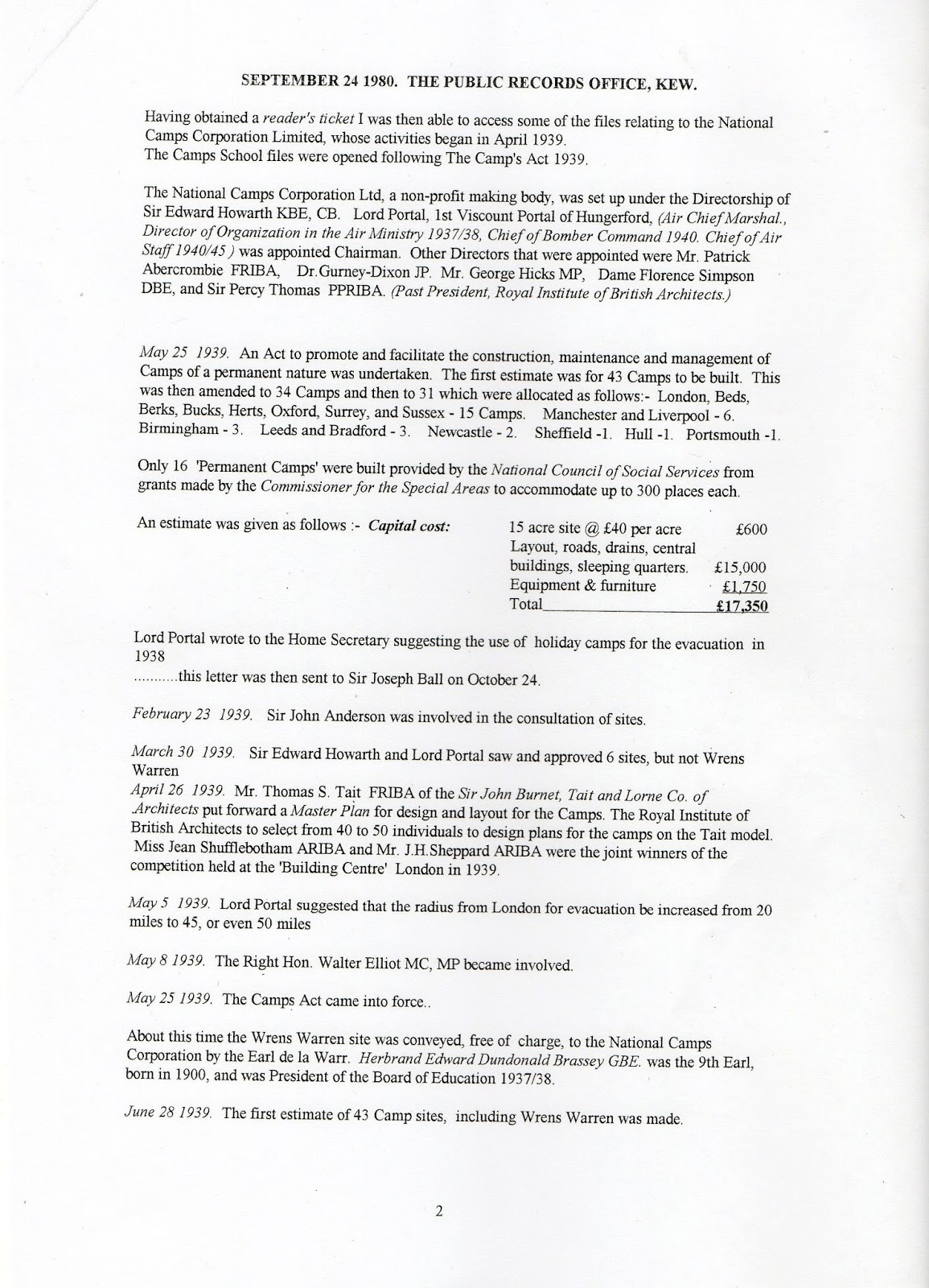 Among the archives we found this research into the National Camps Corporation supplied to David Mack by John Bell – who wrote a book about Wrens Warren Camp School in Coleman’s Hatch, East Sussex. Unlike Wyre Farm camp School, Wren’s Warren fell by the wayside and never became a secondary boarding school or anything related. It fell into dereliction and then a chicken farm and in 2001 made was for 7 luxurious houses according to John Bell.