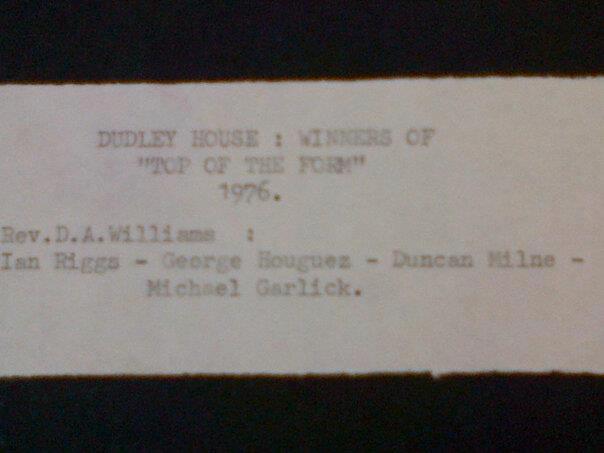 George Houguez Dudley house team, Top of The Form competition. Circa 1975/6. That’s me in the middle.