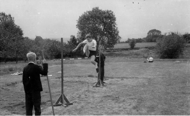 Michael Billings for the high Jump! (Possibly Deputy head Mr John Lowe at the back – left but not sure – see the larger version below.