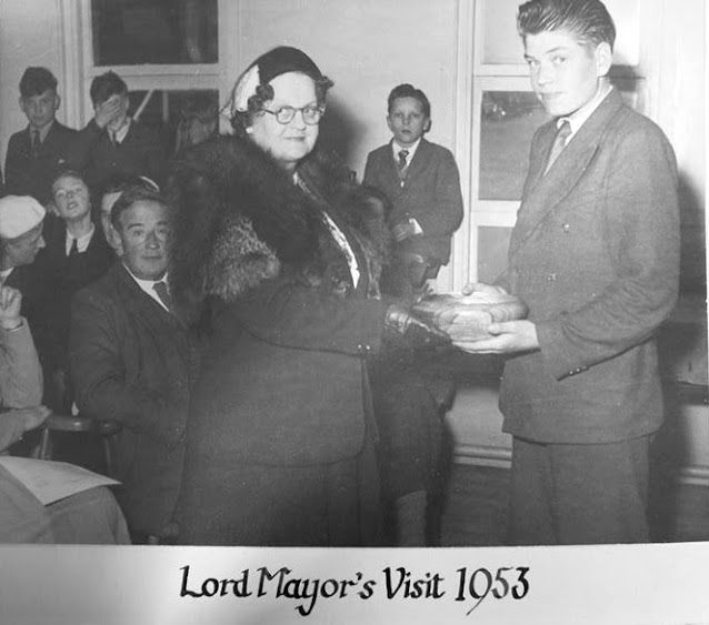 Headmaster Mr Morris left of  the Lord Mayor and Directory of Coventry Education Dept Mr Chinn left of Mr Morris.